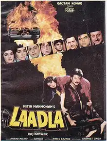 Laadla (transl. Beloved Son) is a 1994 Indian Hindi-language drama film directed by Raj Kanwar, based on a screenplay written by Anees Bazmee. The film stars Sridevi and Anil Kapoor while Raveena Tandon, Anupam Kher, Farida Jalal, Shakti Kapoor, Prem Chopra, Aruna Irani, Mohnish Bahl and Paresh Rawal play supporting roles.