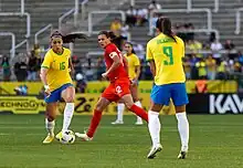 The Canadian men's team's contract had also expired, and had also gone on strike in June 2022 over funding. The women's team sat out of training on February 11, but returned within a week, claiming that Canada Soccer had threatened legal action against the team and individual players because it had not gotten permission to legally strike from the Canada Industrial Relations Board. Players responded by claiming their federation was poorly governed and underfunding the women's team compared to the men's program, and Sinclair posted to Twitter that the team was playing the 2023 SheBelieves Cup under protest.[58] Both teams also criticized Canada Soccer's agreements with a private entity, men's Canadian Premier League-affiliated Canada Soccer Business, giving it control over and a cut of revenue from corporate partnerships and non-FIFA broadcast rights for both men's and women's teams for 10 years.[59][60]