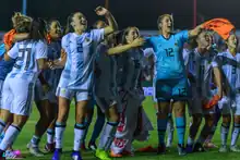 The Chilean team made its competitive return in May 2017, defeating Peru 12–0.[68] In 2018, thanks to the efforts of ANJUFF,[67] Chile hosted the 2018 Copa América Femenina, in which Chile finished second behind Brazil, qualifying them for the nation's first FIFA Women's World Cup and a chance to qualify for the 2020 Olympics in a CAF-CONMEBOL qualification playoff.[69]