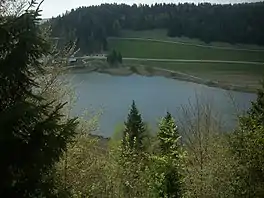 Lac de Lamoura is a lake at Lamoura in the Jura department of France. It is the highest lake in the Jura at an elevation of 1156 metres.