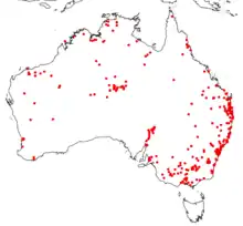 | Distribution map of Laccotrephes tristis in Australia | |