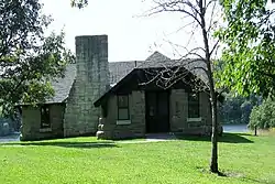 On November 15, 1990 three areas of the park were listed on the National Register of Historic Places. Their historic importance is derived from their association with the CCC. The park was part of a larger study of Iowa's state parks called the Civilian Conservation Corps Properties in Iowa State Parks: 1933-1942. Area A focuses on a picnic area that includes the park's entrance portals, a picnic shelter, two latrines, three fountains, a footbridge, and the associated landscaping and trails. These facilities were built from December 1934 to April 1935.[4] Area B includes the bathhouse, restroom, and concession. Company 769 began construction of these facilities in May 1935, and the side camp completed them by September 1937.[6] Area C is the lodge or refectory. It was begun in July 1936 and completed in July 1937.[7] The Rustic style was used in the design of the buildings. The significance of this architectural style is that it was designed to blend into its natural surroundings by means of its material, design, and workmanship.[4] Areas A and B are historic districts, while Area C is an individual listing.