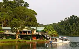 During World War II, air raids on Australian towns by Japan and the fear of an invasion by the Japanese led to evacuations from northern Australian towns. In March 1942, the students of St Augustine's College in Cairns were evacuated to the guest house at Lake Barrine.[14] In late 1942, Lieutenant General Thomas Blamey decided to establish army facilities on the Atherton Tableland for the recuperation and training of troops returning from the Middle East to defend Australia against the Japanese. With 40,000 troops on the Atherton Tableland, Lake Barrine became an important recreational facility and the guest house was used by the 2/1 Australian Army Convalescent Depot. After the war ended, the Curry family resumed their tourist business at the lake.[6]