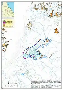 - 1 2 Environmental Protection Agency Queensland (EPA) (1999) Semi-permanent saline lakes of south-western Queensland. (reprinted from Jaensch 1999). The status and importance of Queensland’s south-western wetlands. Report by Wetlands International-Oceania to EPA.