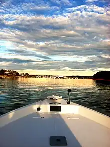 Lake Hartwell is a man-made reservoir bordering Georgia and South Carolina and encompassing parts of the Savannah, Tugaloo, and Seneca rivers. Lake Hartwell is one of the Southeastern United States' largest recreation lakes. The lake was created by the construction of the Hartwell Dam, completed in 1962 and located on the Savannah River seven miles (11 km) below the point at which the Tugaloo and Seneca Rivers join to form the Savannah. Extending 49 miles (79 km) up the Tugaloo and 45 miles (72 km) up the Seneca at normal pool elevation, the lake comprises nearly 56,000 acres (230 km2) of water with a shoreline of 962 miles (1,548 km). The entire Hartwell "Project" contains 76,450 acres (309 km2) of land and water. I-85 bisects Hartwell Lake and makes the area easily accessible to visitors.[3]