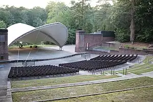 The Martha Wren Briggs Amphitheatre at Lake Matoaka is an amphitheater with space for up to 2,000 patrons. The amphitheater was built by the Jamestown Corporation in 1947 to host The Common Glory, a historical outdoor drama by Paul Green recounting the story of Williamsburg during the American Revolution which also lent its name for the amphitheater's original name.[21] The play would play through the summer from 1947 until 1976.[22] With the folding of the Jamestown Corporation, the amphitheater was acquired by the college in 1976 and renovated in 2006.[22]