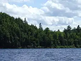 The lake runs about six miles (9.7 km) east to west, with a southern arm extending about another four miles (6.4 km). A dam separates the Michigamme River from the main body of the lake at the end of the southern arm. The Spurr River flows into the lake's west end and the Peshekee River flows into the lake in the northeast. Van Riper State Park and Van Riper beach are located at the eastern shoreline of the main arm. The lake is speckled with many islands and rock beds that often creep over the waterline in late summer and fall.