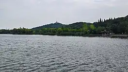 Lake Shi (Chinese: 石湖; pinyin: Shí Hú) or Shi Hu, literally Stone Lake, is a fresh water lake located in the southeast of Suzhou, Jiangsu Province. It is closed to Shangfang Mountain, which is a national forest park of China. The most famous spot of it is "Lake Shi String of Moons" (石湖串月) on August 17 of the Chinese calendar, when nine reflections of the moon appear in a line. Lake Shi was a bay of the Lake Tai in ancient times.[1]