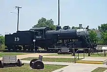 Lake Superior & Ishpeming ALCO 2-8-0 No. 19, lettered as Frisco No. 19, in Frisco, Texas