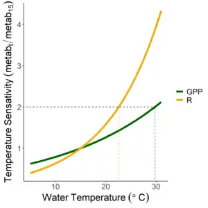 - ↑ Yvon-Durocher, Gabriel; Caffrey, Jane M.; Cescatti, Alessandro; Dossena, Matteo; Giorgio, Paul del; Gasol, Josep M.; Montoya, José M.; Pumpanen, Jukka; Staehr, Peter A.; Trimmer, Mark; Woodward, Guy (2012). "Reconciling the temperature dependence of respiration across timescales and ecosystem types". Nature. 487 (7408): 472–476. Bibcode:2012Natur.487..472Y. doi:10.1038/nature11205. ISSN 1476-4687. PMID 22722862. S2CID 4422427.