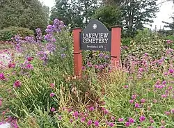 Lakeview Cemetery was established in 1867 when the city of Burlington purchased 23 acres of land from H. B. Sawyer for $3,500 (about $65,000 in 2019).[1] In 1868, the city purchased an additional seven from J. A. Arthur for $2,000 (about $38,000 in 2019).[1]
