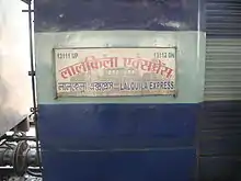 - ↑ "Lal Quila Express 13112". Retrieved 18 October 2012.