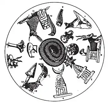 - ↑ Ursula Seidl (1989). Die Babylonischen Kudurru-Reliefs: Symbole Mesopotamischer Gottheiten. Academic Press Fribourg. pp. 38–40.