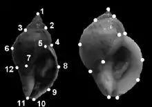 In morphometrics, landmark point or shortly landmark is a point in a shape object in which correspondences between and within the populations of the object are preserved. In other disciplines, landmarks may be known as vertices, anchor points, control points, sites, profile points, 'sampling' points, nodes, markers, fiducial markers, etc. Landmarks can be defined either manually by experts or automatically by a computer program. There are three basic types of landmarks: anatomical landmarks, mathematical landmarks or pseudo-landmarks.