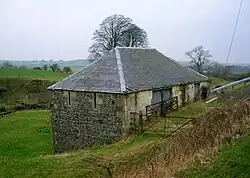 The castle or fortified manor house lay on an area of slightly raised ground between the old Borland Smithy (East Borland Farm) and Borland Mill. No remains are visible on the site as the farmer removed the remaining walls previous to 1855,[6] although some of the foundations although stones are still sometimes struck during ploughing and part of the old moat was visible in the 19th century situated close to the Borland Burn that was ideally located to fill it.[7] The farmer in 1855 referred to it as Borland House however it is recorded as a ruined castle on several maps up until 1821.[8][9]