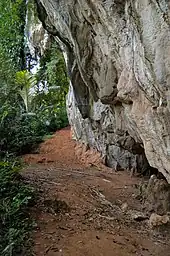Lang Rongrien (Thai: หลังโรงเรียน, lit. 'behind the school')[lower-alpha 1] is a rock shelter and Hoabinhian habitation site in the upland region of Krabi province in west-coast southern Thailand. The site is of the Pleistocene, early Holocene archaeological time frame. Excavations at the site began in 1974, and primary research was headed by Douglas Anderson.[1] Though this rock shelter site is not as large as some others, it is archaeologically rich in its findings. Some of the sediment at the site was disturbed by soil collections, but not enough to have ruined the more impressive archaeological finds.[1] The site is located within the Krabi River valley, in a somewhat hard-to-reach area that can only be accessed from a steep trail below the rock shelter, or a narrow ridge that approaches the rock shelter from the north. Radiocarbon dating at the site has put the evidence from between 39,000 and 28,000 years before present.[1]