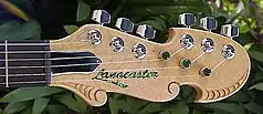 The Langcaster Guitar[4] is distinctive for its unique prehistoric swamp kauri body and intricate patterns made from the roots of the native New Zealand Kauri tree. Carbon dating carried out by the scientists at the University of Waikato in New Zealand and the University of Groningen in the Netherlands has found wood used in the guitar bodies to be more than 35,000 years old.[5] Notable players of Langcaster Guitars include Jan Akkerman,[6] Kara Gordon,[7] and Arli Liberman.