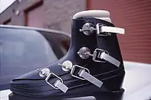 Even if this hot water fitting step wasn't used, strong skiers would wear out their boots in months as the leather softened, and mere weeks if they raced them.[5] This left only a short period of time between the painful break-in period and the time when the boots were too soft to provide good control over the skis.[3] Jean-Claude Killy took to having Michel Arpin ski in his boots while they broke in, giving them to Killy to ski for the few weeks before they wore out. Another solution to improve lateral control was the "long thong", a leather strap wrapped around the boot and lower leg, which came at the cost of eliminating any sort of quick release.[5]