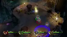 Like its predecessor, Lara Croft and the Guardian of Light , Lara Croft and the Temple of Osiris is a non-linear "arcade-inspired" action game with a fixed isometric camera, similar to Tomb Raider: The Prophecy for Game Boy Advance. Additionally, the colored circle underneath each player in tandem with the twin-stick control scheme draws total gameplay comparisons to SpongeBob SquarePants: Plankton's Robotic Revenge, Ratchet & Clank: All 4 One, or Contra: Rogue Corps. It features cooperative gameplay, and up to four players can take control of one of four characters, Lara Croft, Carter, Isis or Horus. Each playable character possesses unique weapons and skills. As with some previous installments, Lara retains her dual pistols with infinite ammunition and a grappling hook, which she is able to use to cross gaps.