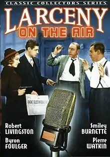 Larceny on the Air is a 1937 American thriller film directed by Irving Pichel and starring Robert Livingston, Grace Bradley and Willard Robertson. It was produced and distributed by Republic Pictures.