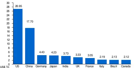 | Largest economies in the world by GDP (nominal) in 2023 according to International Monetary Fund estimates[n 1][1] |
