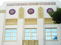 The Las Vegas Academy's campus is located on the site of the first high school in Las Vegas. The school uses two of the buildings that were constructed in 1930 and opened in the fall of 1931. Las Vegas High School was the first high school in Las Vegas, and its location caused controversy at the time. Many residents believed the school was too far away from the small population at the time, which has changed as the city grew around the school. The school originally had three buildings: the tri-level Main building on the corner of 7th St. and Bridger Ave., the Gymnasium, and a third building that housed manual arts (shop classes) and in later years government classes. It was torn down in 1969. The two remaining buildings are listed as the Las Vegas High School Academic Building and Gymnasium on the National Register of Historic Places, representing Las Vegas' best example of art-deco architecture of the 1930s. The school's outer appearance has been maintained but the interior has been changed since its original construction.