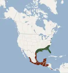 Primarily found along the coastal regions of the southeastern United States and eastern Texas, Cuba, coastal Mexico, and Central American countries of Belize, Costa Rica, El Salvador, Guatemala, and Honduras. This is the most abundant bat species in some regions of Florida. This species has a few occurrence records from Virginia, North Carolina, and Pennsylvania.[2]