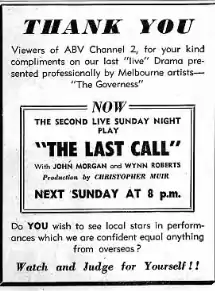 Last Call is a 1958 Australian TV play set in a South American country. It was directed by Christopher Muir.[4]