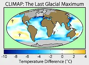 - ↑ Seltzer, Alan M.; Ng, Jessica; Aeschbach, Werner; Kipfer, Rolf; et al. (2021). "Widespread six degrees Celsius cooling on land during the Last Glacial Maximum". Nature. 593 (7858): 228–232. Bibcode:2021Natur.593..228S. doi:10.1038/s41586-021-03467-6. PMID 33981051. S2CID 234485970.