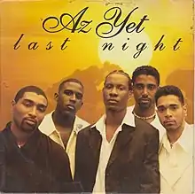 "Last Night" is a song by American R&B group Az Yet, produced by Babyface and Mervyn Warren, and released as the first single from the group's debut album, Az Yet (1996). The song became the group's first hit, reaching number nine on the US Billboard Hot 100, number one on the Billboard Hot R&B Singles chart, and number four on the Billboard Rhythmic Top 40 chart. Additionally, it reached number two in Australia, number six in New Zealand, and number eight in the Netherlands. The song was also included on The Nutty Professor soundtrack.