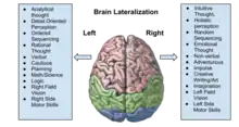 Some popularizations oversimplify the science about lateralization, by presenting the functional differences between hemispheres as being more absolute than is actually the case.[31]:107[32] Interestingly, research has shown quite opposite function of brain lateralisation, i.e. left hemisphere creatively and chaotically links between concepts and right hemisphere tends to adhere to specific date and time, although generally adhering to the pattern of left-brain as linguistic interpretation and right brain as spatio-temporal.[33][34][35]