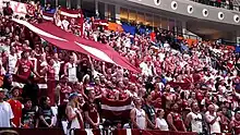 Latvia entered the competition with high hopes, however, their biggest star Kristaps Porziņģis was unable to represent the team during the 2023 FIBA World Cup, due to failing to recover from an injury.[24] Nevertheless, Latvia surprisingly eliminated European vice-champions France in the first round by winning a decisive game 88–86 and qualified to the second round of the 2023 FIBA World Cup with two victories (also versus Lebanon 109–70) and one 101–75 loss to Canada.[25][26] One of the Latvian team leaders Dāvis Bertāns described victory versus France as "the biggest win in Latvian basketball history since 1935".[27] In the second round Latvia achieved yet another memorable 74–69 victory versus the reigning world champions Spain.[28] In the next game Latvia crushed Brazil 104–84 and advanced to the quarter-finals as the second-best team in the group, leaving Spain and Brazil behind without playoffs.[29] But in quarter-final Latvia lost to Germany in the last seconds with the result 79–81 and did not directly qualify for the Paris 2024 Olympics.[30] Latvia finished the tournament in fifth place after defeating Italy (82–87) and Lithuania (98–63).[31][26]