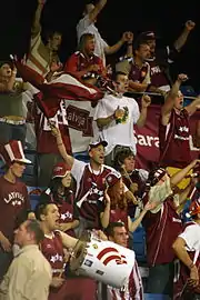 Latvians, like their Baltic neighbors Lithuanians and Estonians, also began playing basketball in the 1920s, quickly rising as the strongest of the Baltic teams. On 13 December 1925 in Riga, when the Lithuanian national team played their first international game. Latvia easily swept them with the score of 41–20.[7] Later on, Latvia continued to dominate the future three-times European champions as well (41–29 and 123–10).[8] In fact, Latvia had one of the world's strongest national basketball teams. The first Latvian teams consisted of students and pupils, who were trained by coaches of the American YMCA (Young Men's Christian Association).[9]