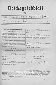 - ↑ "Reich Takes Over Rights of States". New York Times. 31 January 1934. p. 1.