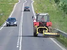 Tractor pulled mowers are usually in the form of an attachment to a tractor. The attachments can simply function by the movement of the tractor similar to manual push cylinder mowers, but also sometimes may have powered moving blades. They are commonly mounted on either the side or the back of the tractor.