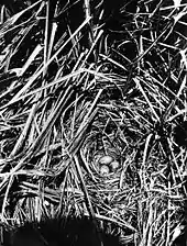 On Laysan, courtship and the start of nest-building was in April, with eggs being laid from May to June and the height of the nesting season taking place in June and July; there is a report of recently hatched young birds from Midway in March, but this seems to be unusually early. On Laysan, nests were built in tussocks of endemic Cyperus pennatiformis subsp. bryanii, kāwelu (Eragrostis variabilis) and introduced Bermuda grass (Cynodon dactylon) around the lagoon, while on Midway, it nested in any shelter that seemed convenient, such as naupaka kahakai (Scaevola taccada ) thickets and pōhuehue (Ipomoea pes-caprae subsp. brasiliensis) stands. The nests were placed on the ground or inside the base of a tussock; in the latter case the birds would rearrange the dried dead leaves to form a roofed cavity reached through a small tunnel some 15 centimetres (5.9 in) long. Nests were lined with soft dried plant material and down of seabirds.