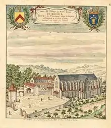 The abbey was founded in 1137 by Foulques, lord of Marcilly, and his son Guillaume consequent upon an oath made in the Holy Land, and settled with monks from Vaux-de-Cernay Abbey, as a member of the congregation of Savigny Abbey.[1] The abbey was soon able to settle a foundation of its own, that of La Trappe Abbey in 1140. In 1147 the Savigniac houses became part of the Cistercian movement, among them Breuil-Benoît, which was made a daughter house of the filiation of Clairvaux.