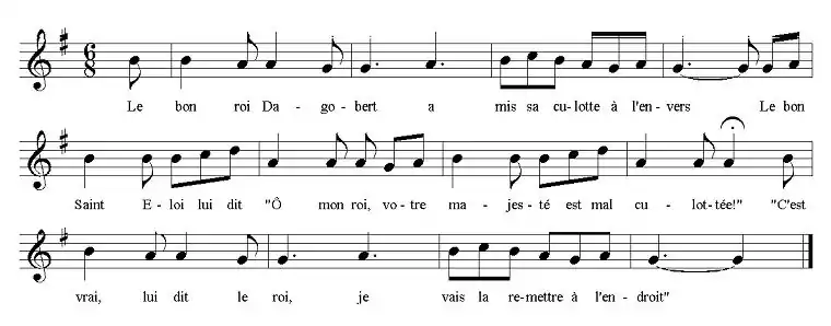 - ↑ "« Le Bon Roi Dagobert », une chanson parodique". Histoire et Civilisations.com (in French). 2023-11-05. Retrieved 2023-11-05.
