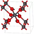 The symmetry of the beta form is tetragonal, space group P42/mnm (No. 136), Pearson symbol tP6, lattice constants a = 0.491 nm, c = 0.3385 nm, Z = 2[5] and related to the rutile structure and can be envisaged as containing columns of octahedra sharing opposite edges and joined to other chains by corners. This contrasts with the alpha form where the octahedra are linked by adjacent edges to give zigzag chains.[4]