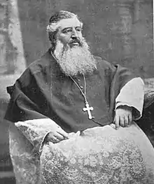 On July 15, 1892, Leander Schnerr was elected the third archabbot of Saint Vincent Archabbey on the second ballot.[11] He was consecrated on October 5 by Richard Phelan after receiving approval from Pope Leo XIII.[12] Hundreds of Schnerr's former parishioners traveled from Pittsburgh to Latrobe for a celebration. As a part of the festivities, the cornerstone of Saint Vincent Basilica was laid.[13] The church would be completed near the end of Schnerr's time as archabbot in 1905.[14] In addition to the spiritual portion of the festivities, the monks hosted a feast for 400 guests in Schnerr's honor.[15]