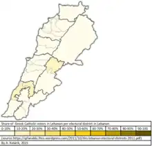![]() Distribution of Melkite Catholic Christians in Lebanon | |