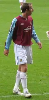 Bowyer rejoined West Ham United, the club he supported as a boy, in June 2006 for an undisclosed fee, declaring that he had "unfinished business" with the club.[29] He made 22 appearances in the 2006–07 season,[30] which was disrupted by a dislocated shoulder suffered in West Ham United's 6–0 loss to Reading in January 2007.[31] However, Bowyer made a quick and sooner-than-expected recovery and played in five of West Ham's crucial games towards the end of the season.[30]