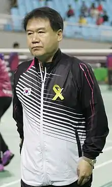 Lee Deuk-choon (Hangul: 이득춘, born 16 July 1962[1]) is a retired male badminton player from South Korea. In 2013, he became head coach of the Korean National Badminton Team after nearly 20 years as the head coach of the Junior National Team.[2] He replaced Kim Joong-soo, who was the acting head coach following the removal of Sung Han-kook. Lee was replaced as head coach on January 1, 2017 by Kang Kyung-jin.[3]