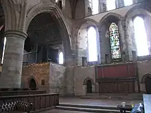 - Choir stalls designed and installed by Leslie Moore (intact)