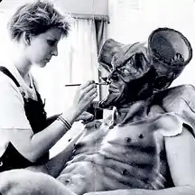 After wrapping his work with Carpenter, Bottin met with Scott to reduce the thousands of creatures suggested by the script to a manageable quantity. The process would involve complicated prosthetic makeup that would be worn for up to 60 days with some full body prosthetics.[21] According to Bottin, at the time, Legend had the largest makeup crew ever dedicated to one project. Bottin divided his facility into different shops in order to cover the immense workload. As actors were cast, Bottin and his crew began making life casts and designed characters on drafting paper laid over sketches of the actors' faces.[21] He designed the prosthetics in his Los Angeles studio and spent some time in England occasionally helping with the application of makeup.[22]