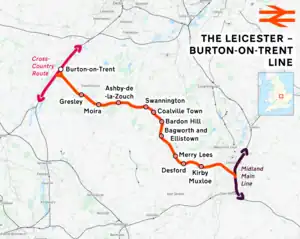 Leicester– Burton upon Trent line | |||||||||||||||||||||||||||||||||||||||||||||||||||||||||||||||||||||||||||||||||||||||||||||||||||||||||||||||||||||||||||||||||||||||||||||||||||||||||||||||||||||||||||||||||||||||||||||||||||||||||||||||||||||||||||||||||||||||||||||||||||||||||||||||||||||||||||||||||||||||||||||||||||||||||||||||||||||||||||||