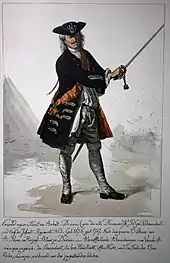 Leopold I, Prince of Anhalt-Dessau (3 July 1676 – 7 April 1747) was a German prince of the House of Ascania and ruler of the principality of Anhalt-Dessau from 1693 to 1747. He was also a Generalfeldmarschall in the Prussian army. Nicknamed "the Old Dessauer" (German: der alte Dessauer), he possessed good abilities as a field commander, but was mainly remembered as a talented drillmaster who modernized the Prussian infantry.