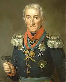 Leopold Wilhelm von Dobschütz (1 January 1763 in Brieg, Niederschlesien – 3 February 1836 at Gut Zölling, Kreis Freystadt, prev. Kreis Sagan, Niederschlesien) was a Prussian "general of cavalry", the "hero of Dennewitz" and "liberator of Wittenberg", military governor of the Rhine province and of Breslau. He was Gutsherr of Zölling, which his wife had inherited, and the Gütern Ober- and Nieder-Briesnitz as well as Schönbrunn, all in the district Sagan.