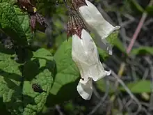 Lepechinia cardiophylla is an uncommon species of flowering plant in the mint family known by the common names Santa Ana pitcher sage and heart-leaved pitcher sage. A broad-leaved fragrant shrub, it has distinct pitcher-shaped flowers. It is native to the Peninsular Ranges and found in the Santa Ana Mountains of Southern California, a few locations in San Diego County, and some of the coastal mountains of northern Baja California. Few populations of the plant are known and many of them are located in areas that are threatened by development and other human activity.