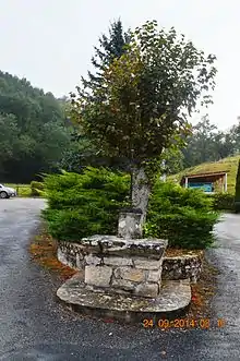 The village square (with a well for animals) has a grouping of buildings of a Church, Town Hall, and School, all in stone. It is a few kilometres on foot from the village to the Corrèze river and to the left a path leads to the Gimel-les-Cascades waterfalls. Again in the village square in front of the well a small path leads over the hills towards the A89 autoroute with beautiful landscapes.